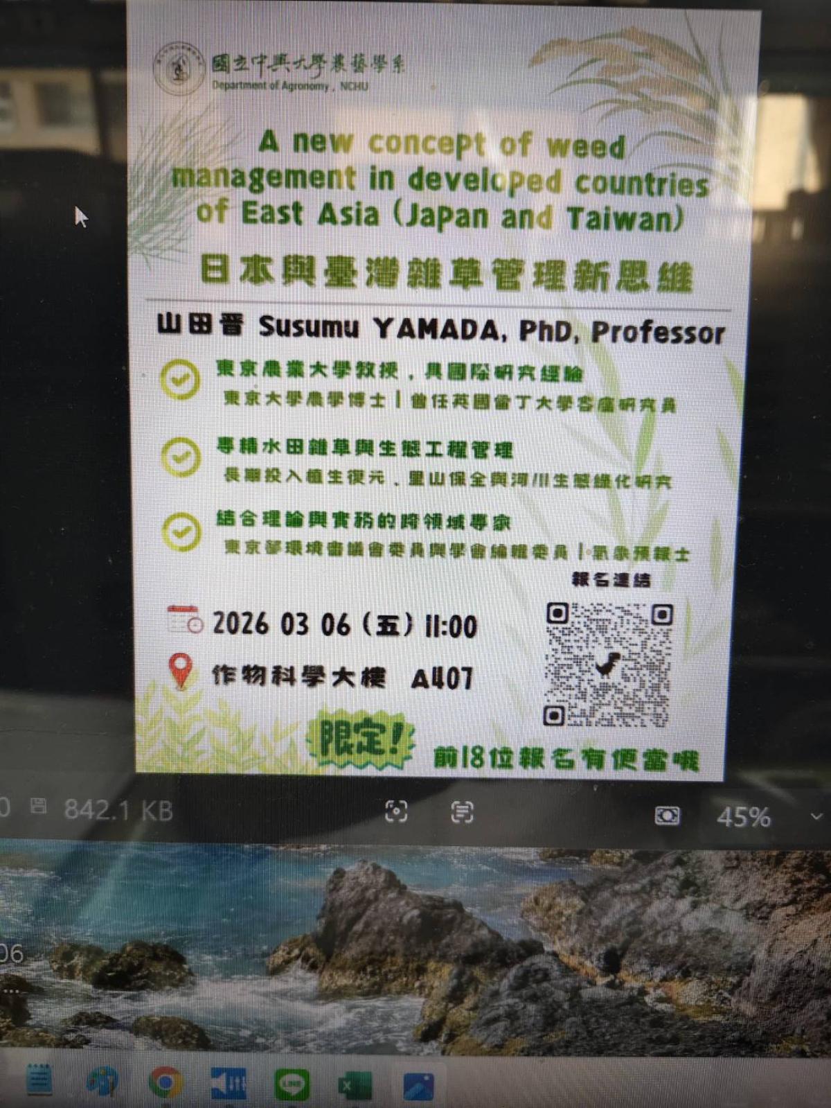 115/3/6歡迎日本山田晋 Susumu YAMADA教授來農藝系演講