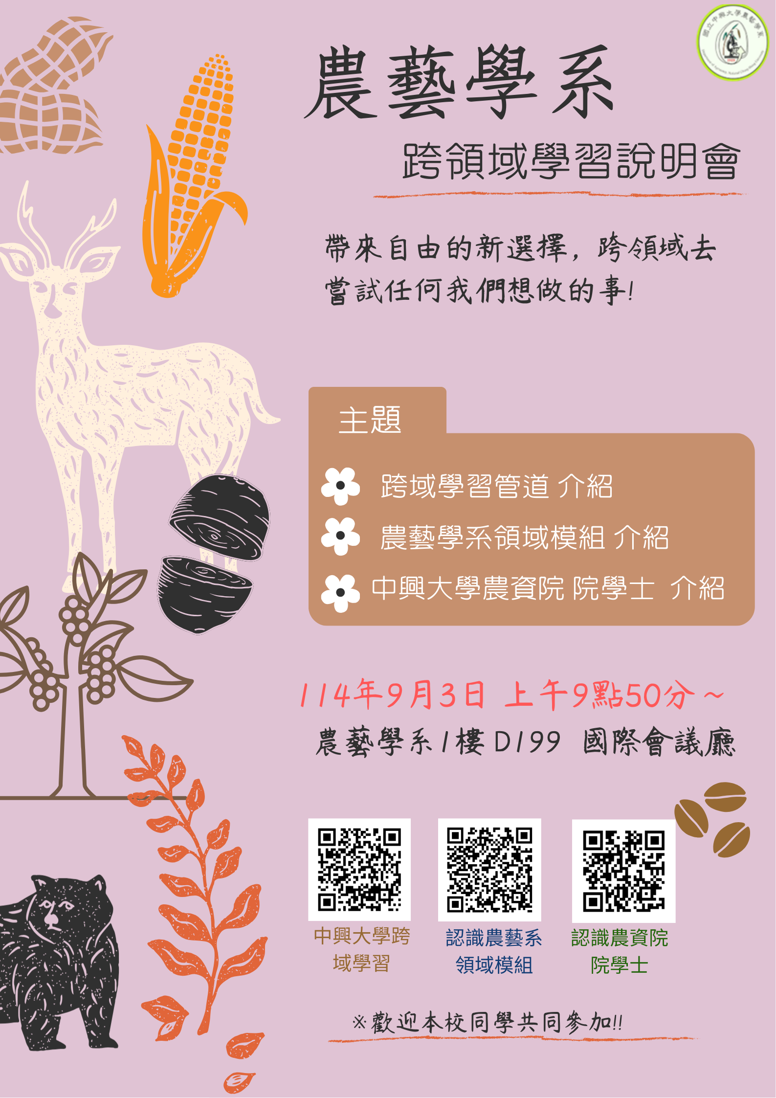 114學年度 農藝學系跨域學習說明會於9月3日舉辦!! 歡迎各位同學一同來了解跨域學習
