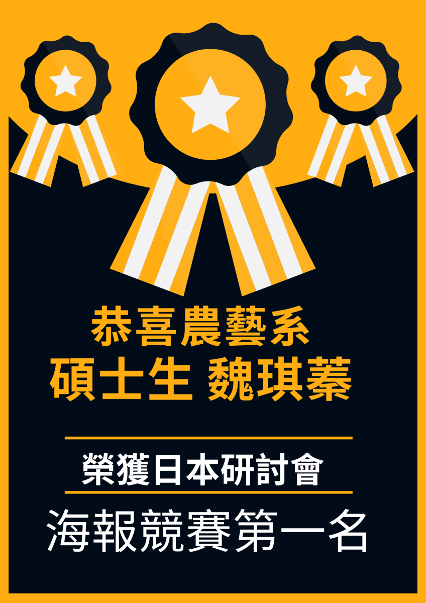 恭喜農藝系 碩士生 魏琪蓁同學榮獲日本研討會海報競賽第一名