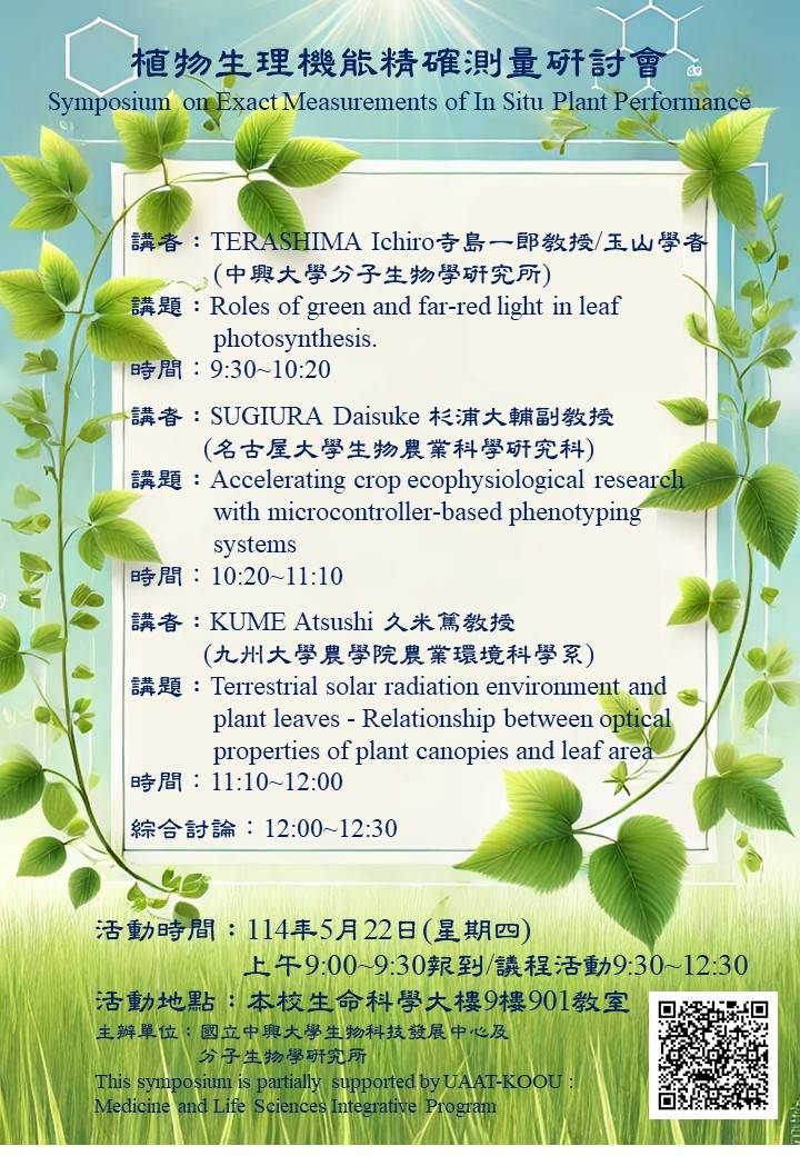 歡迎同學踴躍參加研討會-植物生理機能精確測量研討會