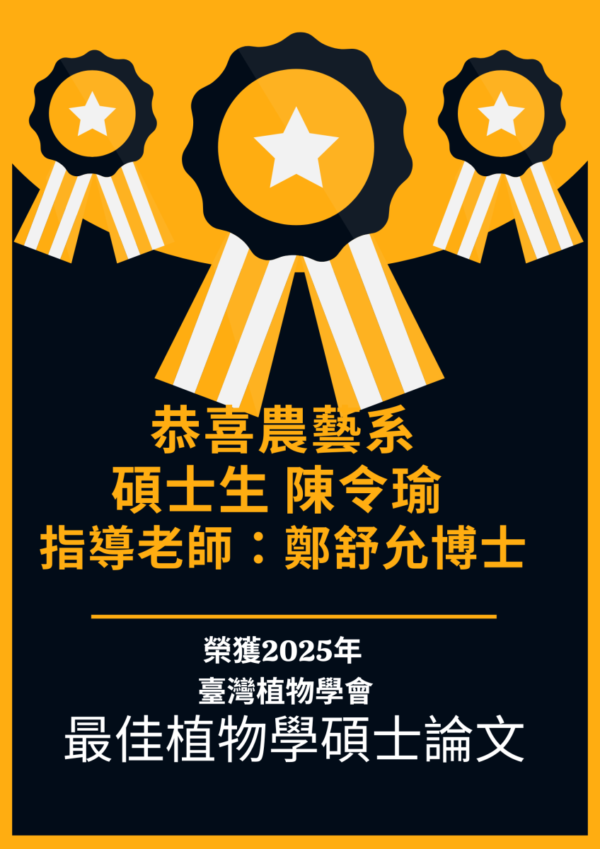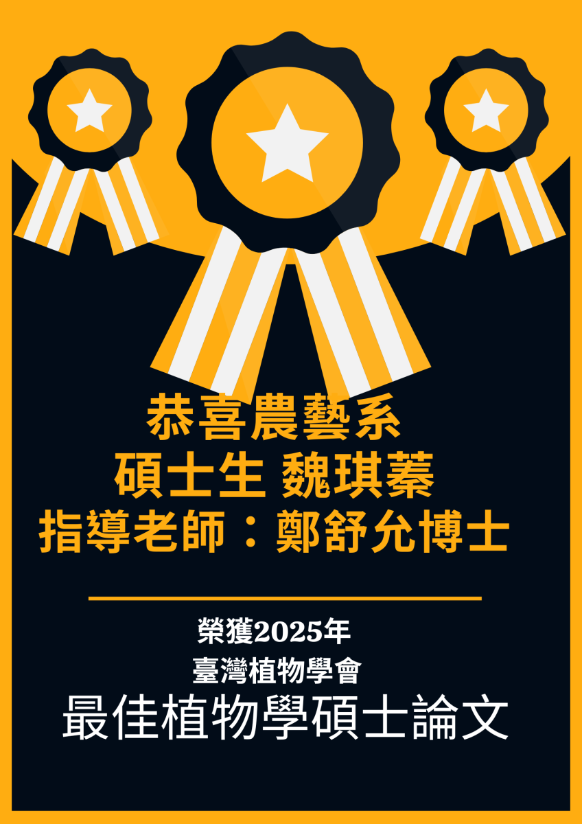 恭喜陳令瑜及魏琪蓁同學榮獲2025年臺灣植物學會最佳植物學碩士論文