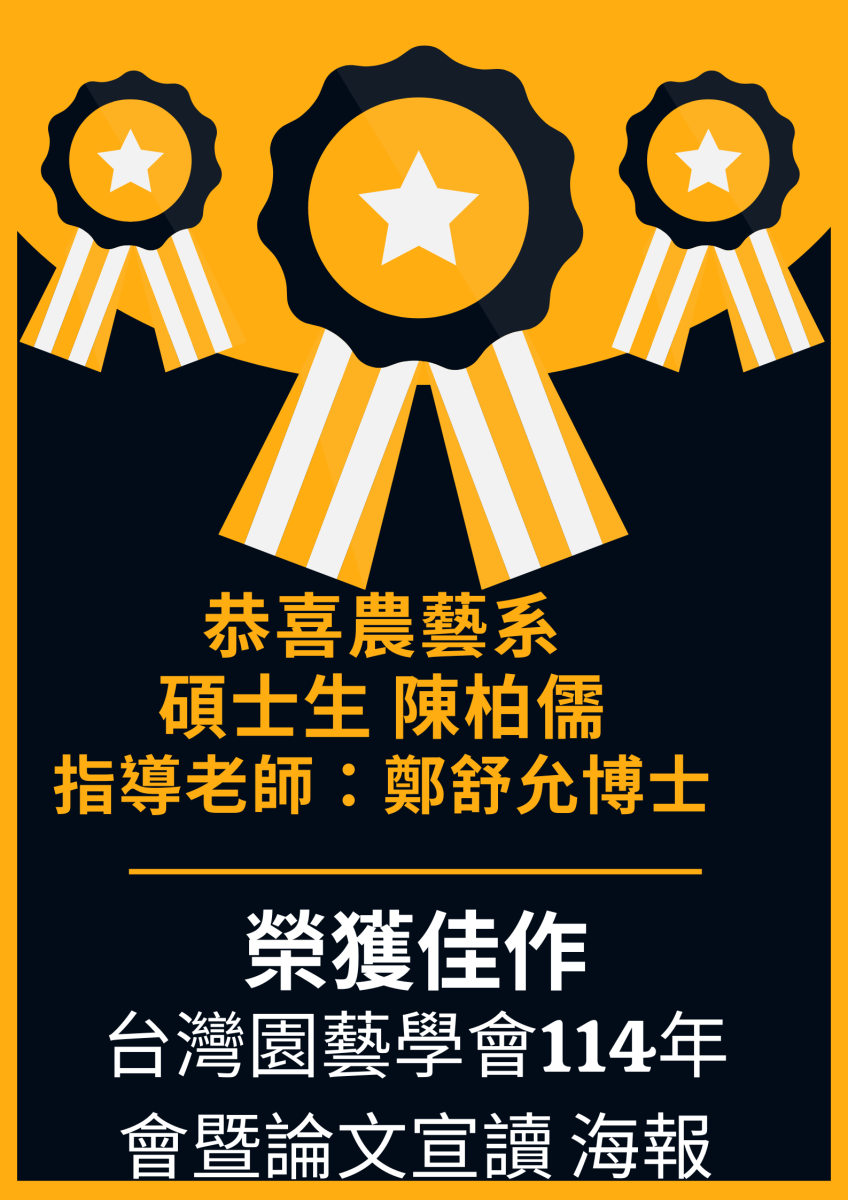 恭喜中興農藝碩士陳柏儒,獲得台灣園藝學會114年會暨論文宣讀 海報組 佳作
