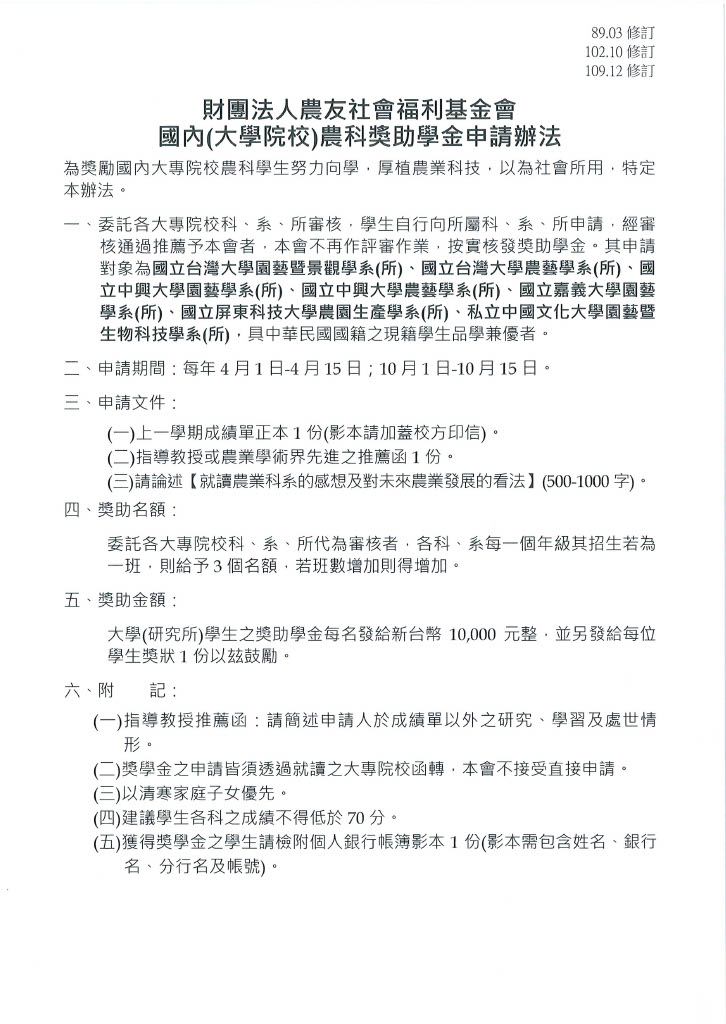 歡迎同學踴躍申請114-2「財團法人農友社會福....