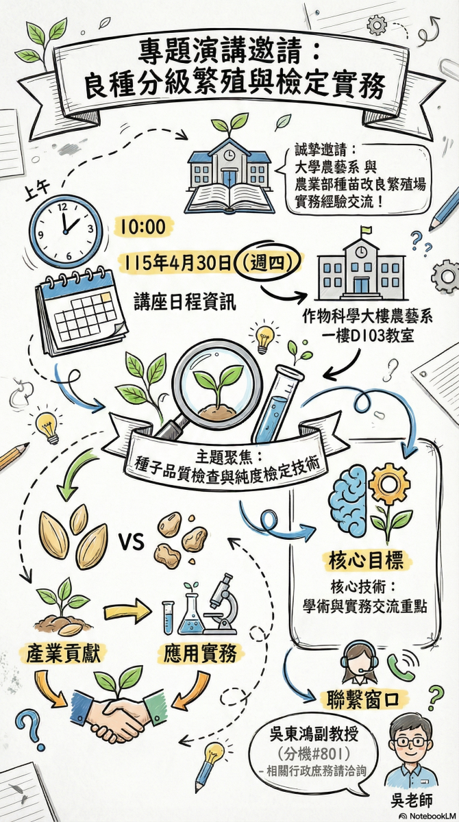 115/4/30上午10點在D103演講主題(良種分級繁殖與檢定實務)