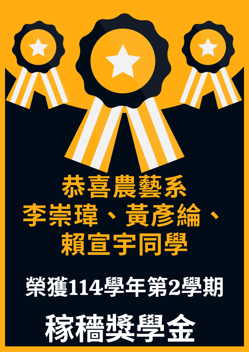 恭喜以下同學榮獲第2學期稼穡獎學金